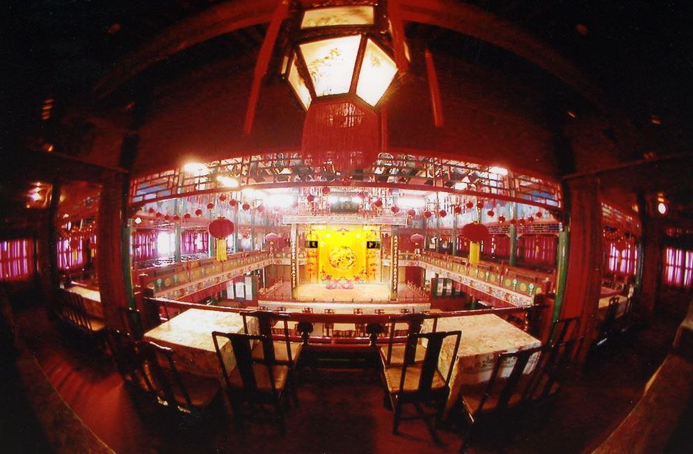 この劇場は、かつて孫文が国民党成立を宣言した場所であり、最近になって新しく劇場として復元されました。そのため、一般的なホール型劇場とは異なり、小振りの体育館程度の建物の中に5m四方程度の舞台と、それに向かい合う形で客席としてのテーブル席が配置されています。役者の顔が良く見えるため、観劇の臨場感が増します。