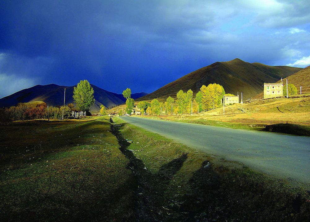 新都橋(しんどきょう)は、中国四川省甘孜チベット族自治州康定市に位置する、標高約3300メートルから3630メートルの高原の町です。正式名称は東俄羅(とうがら)という鎮で、特定の有料観光地というよりも、国道318号線と省道215号線が交差する交通の要衝に広がる「光と影の世界」「写真家の天国」と称されるエリア全体を指します。その美しさは町そのものではなく、折多山から新都橋鎮にかけての約10キロに及ぶ風景长廊にあります。緩やかに起伏する草原、曲がりくねった小川、黄金色に輝くポプラの木、そして山あいに点在するチベット式の民家が、朝夕の低い角度から差し込む陽光によって息をのむような風景画へと変貌します。また、ここは地理的に康巴(カム)チベット文化圏への入口とも言える場所で、蔵族の独特な建築様式や生活文化に触れることができます。