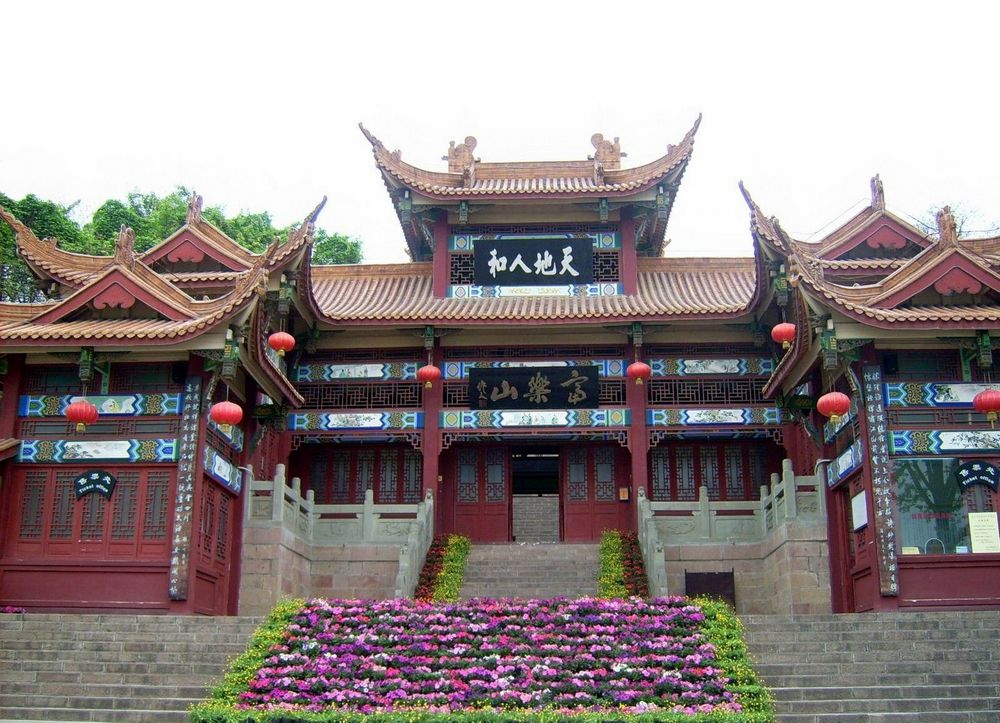 劉備と劉璋の「涪城会」を記念して建てられた「富楽堂」では、紅牆黄瓦の四合院建築と、当時の会見の様子を再現した大型泥塑群像を見学できます。
